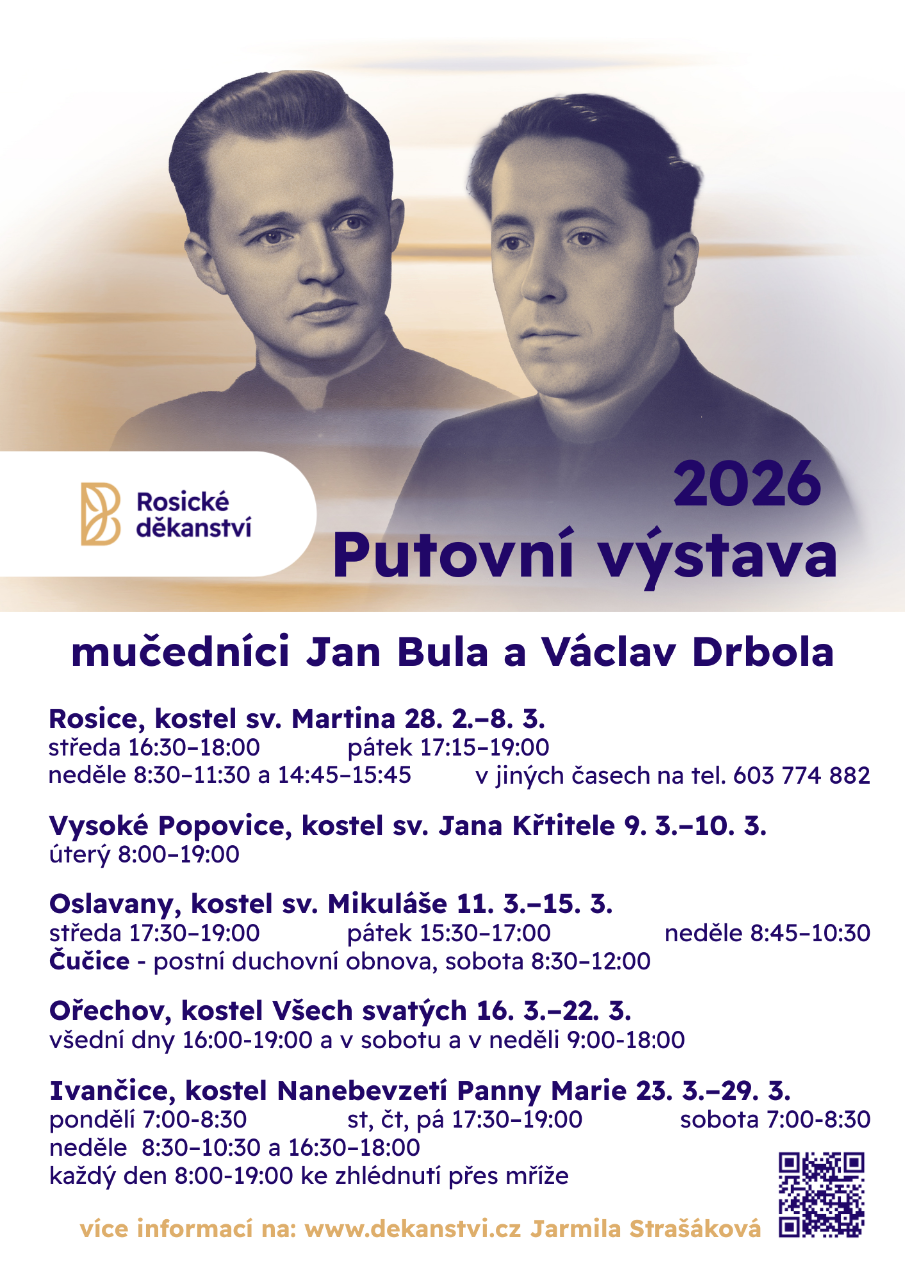 Ve dnech 11.3.-15.3. bude ve farním kostele v Oslavanech k vidění výstava o budoucích blahoslavených mučednících P. Bulovi a P. Drbolovi.